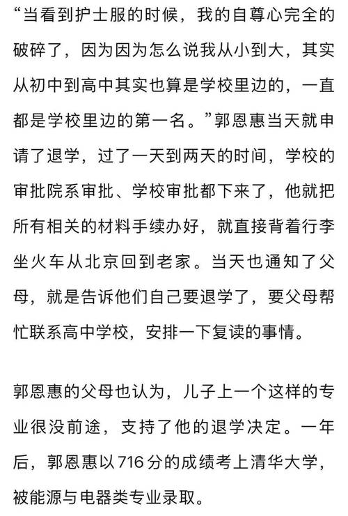 不清楚这个消息的来源和真实性,但据我所知,清华大学和北京大学是两所非常著名的高等教育机构,它们通常要求申请人经过严格的选拔和考试才能获得录取。一般来说,学生在就读期间需要按规定完成全部学业,符合学校的相关规定才能毕业。至于退学和转学的情况,一般会根据具体情况进行处理,但这不是一件轻松的事情,需要学生提供充分的理由并得到学校的批准。总之,无论是在清华还是北大,学生都应该努力学习,尊重校规校纪,坚定自己的人生目标。