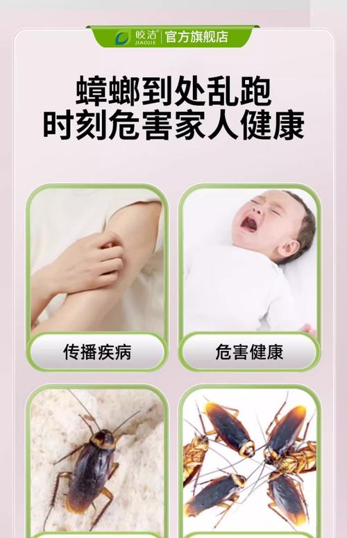 蟑螂有边吃、边吐、边排泄的恶习,并分泌臭液,在其活动中,不仅可携带麻风分支杆菌、鼠疫杆菌、志贺氏痢疾杆菌等40多种病原体,而且也是肠道病和寄生虫病重要的传播媒介,其分泌物和粪便中均含有多种致癌物质。