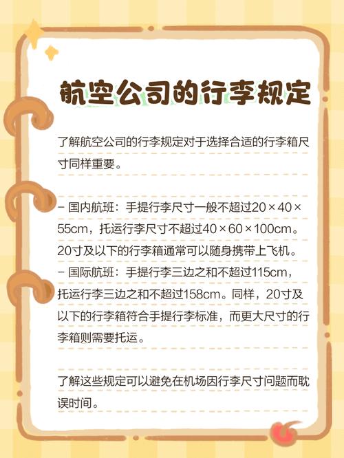 但要注意,乘飞机对行李箱的尺寸限制是指行李箱外形轮廓的最大尺寸,也就是包括拉手和滚轮等在内的尺寸,这一点要注意和通常所称行李箱的尺寸有所区别。