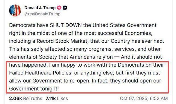所以,不要认为美国政府关门时什么大事,从卡特开始,这就是政府方面的一个筹码,未来几年可能更加频繁,因为美国如今是坡脚鸭政治。民主党把持众议院,共和党的总统。