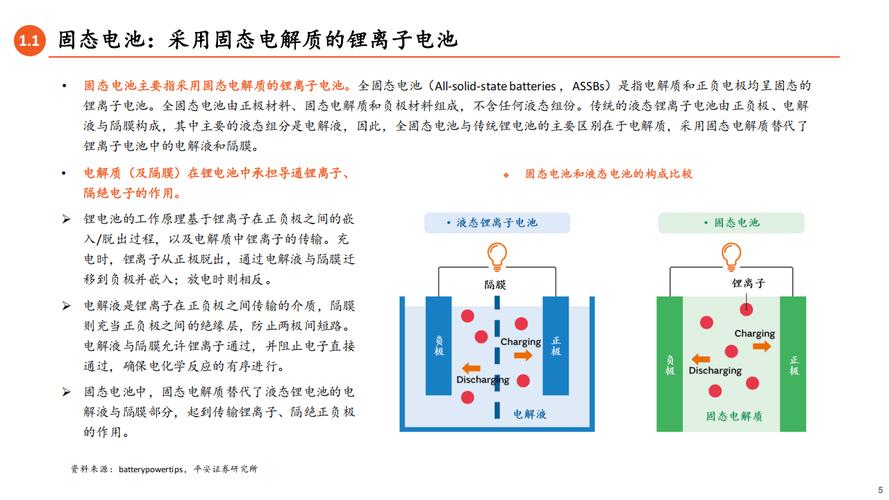 固态电池对比普通锂离子电池差别在于电解液是采用的固态电解液,解决了传统液体电解液氧化分解,挥发易燃,溶剂消耗等短板,可以把能量密度提高很多。