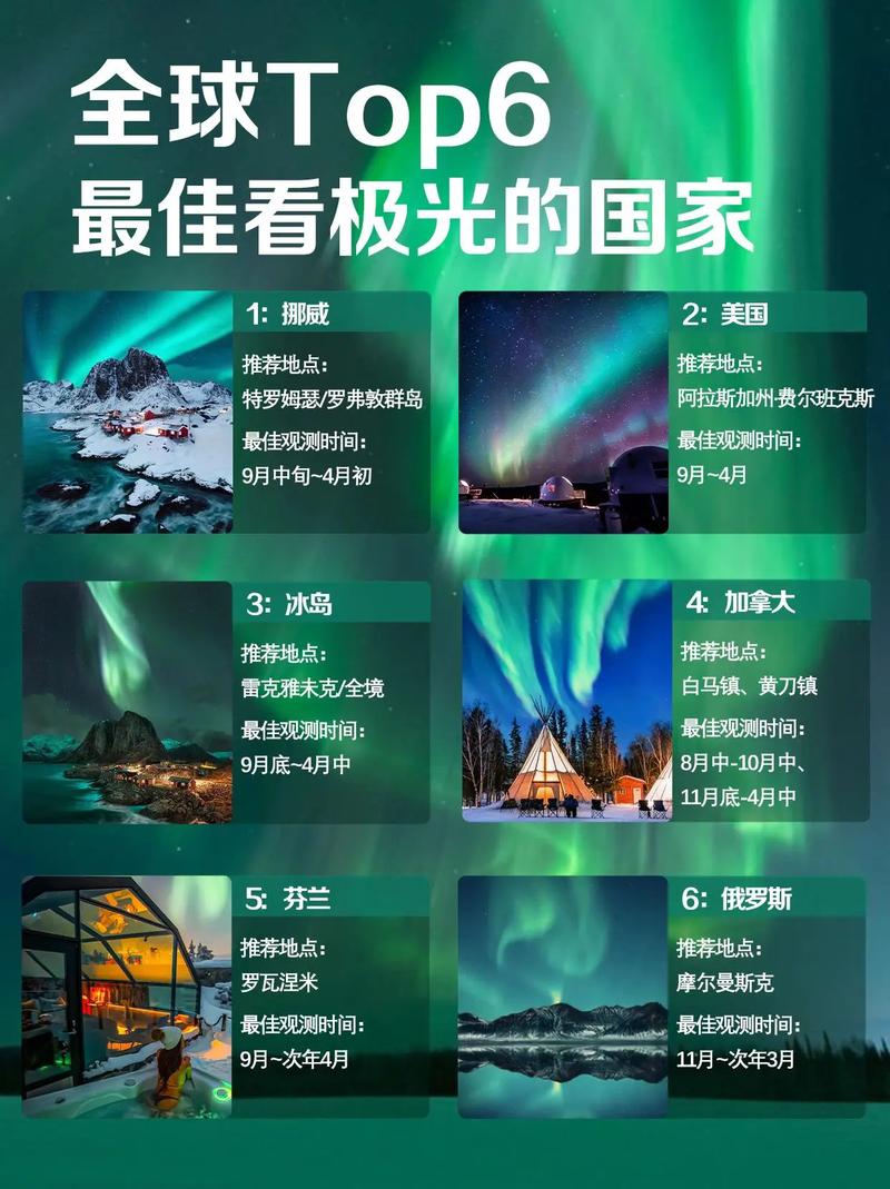而在其他地区,如阿拉斯加和俄罗斯的西伯利亚地区,同样也能在适当的季节和天气条件下目睹这一壮丽的自然现象。