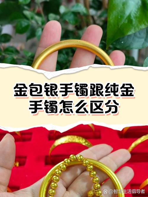 1:看重量,纯金的手镯重量大于金包银的。