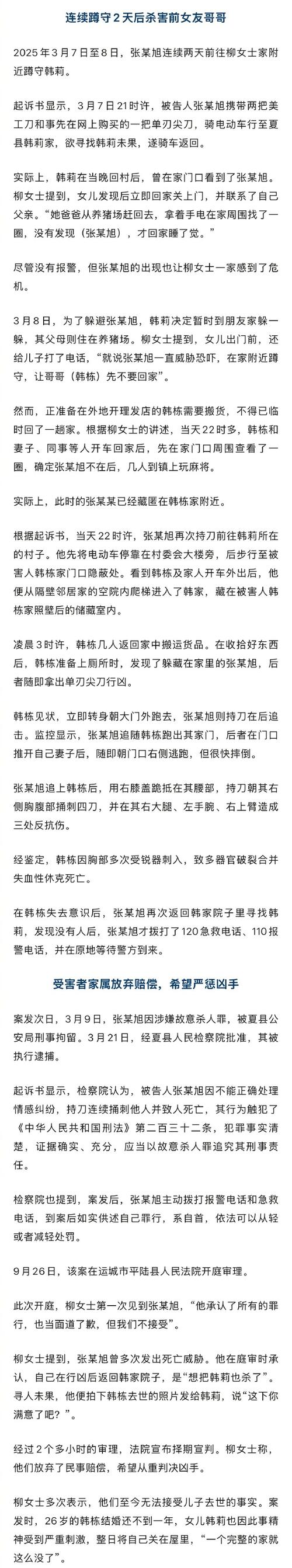 只能说遗憾。如今的社会太复杂了,个人压力也很大。女方为何拒绝男方,不知内情,不便探究。而男方为情杀人,不管出于何因,都不可取。強扭的瓜不甜,干嘛要以命抵命呢?这是对自己生命和他人生命的极端不尊重,更是对双方父母的极大伤害。希望年轻人思想能够成熟些,莫做冲动而又极端的行为,既不利己,又不利人的举动,毁灭的只能是宝贵的生命。