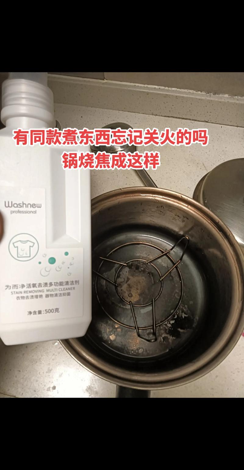 将锅底倒入适量的醋,然后倒入一些水,再加热至沸腾即可。等待锅冷却后,可以使用洗锅球或者锅刷进行清洗。