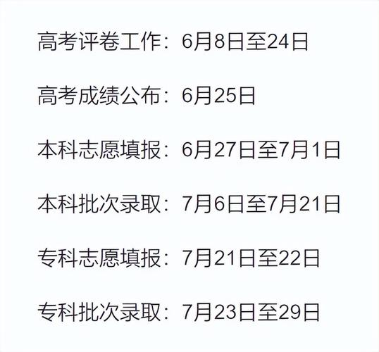 根据历年高考时间安排,一般是在6月份举行,科目安排包括语文、数学、英语等文化课及政治、历史、地理等综合素质考试科目。